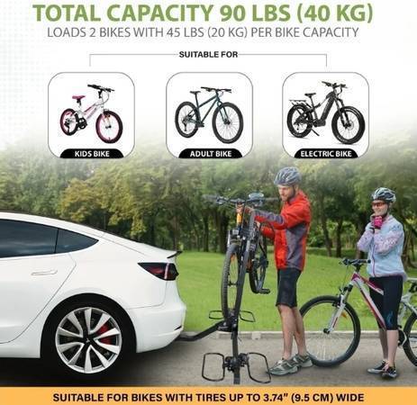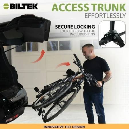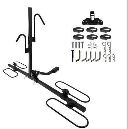 A FUNCTIONAL BICYCLE RACK BUILT FOR TWO. UNCOMPLICATED WITH FEWER THINGS TO THINK ABOUT OR GO WRONG IT IS A HITCH MOUNT DESIGNED TO DROP OUT OF THE WAY OF SUV HATCHES. WELL MADE AND LOCKABLE TO SECURELY TRANSPORTS 2 BIKES FROM POINT A TO POINT B.