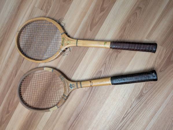 A Sportcraft Argosy and a Hedleys Perfect Balance, both strung with cat gut and both come with head press. $20 each