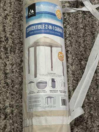 Brand new. Cabana shelter or it can be converted into a 6 foot umbrella. Please view pictures for item specifics and dimensions. Zzyzx