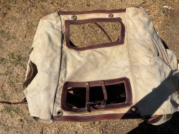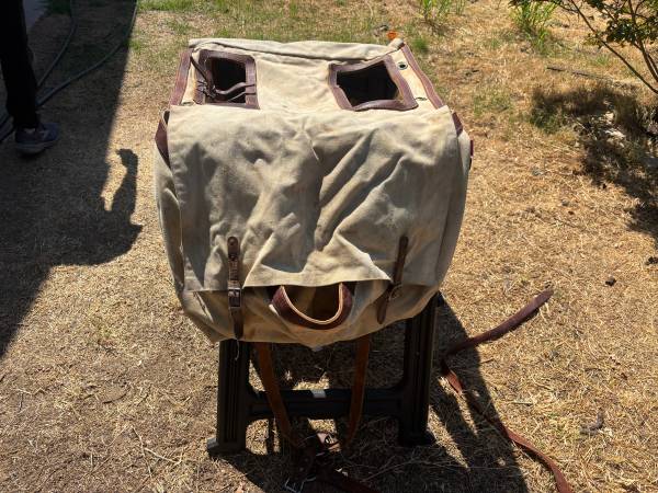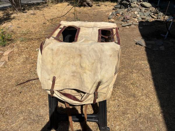 Pack Panniers designed to go over a Western saddle. Stained from use but completely solid and ready to go.