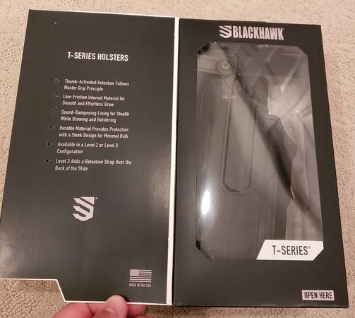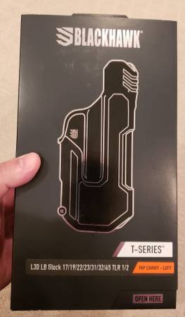 Brand New BLACKHAWK T-Series L3D Level Light Bearing Duty Holster for Glocks. Works with Streamlight TLR-1 or 2. Works with all popular Glocks from 19, 22, 23, 26, 17 to 34, 35 size. Retails for $170 + Tax.