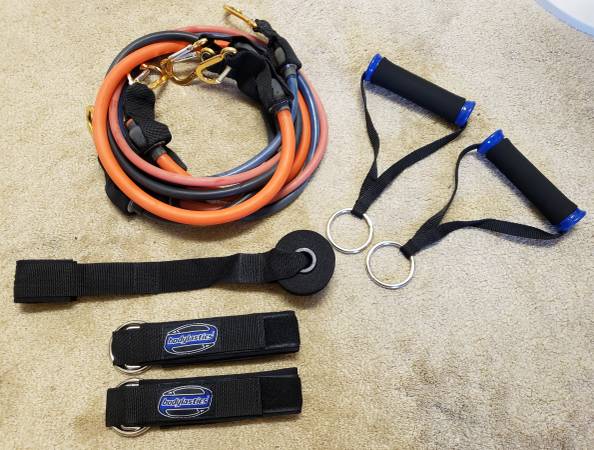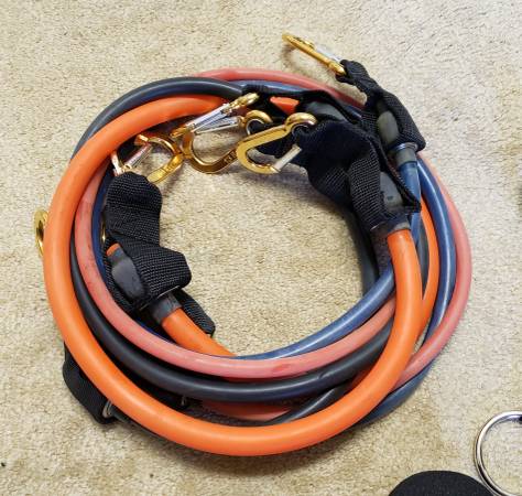 Resistance Training Bands Set. Pretty much a gym in a bag you can use to perform a ton of different exercises. Price: $80 Email, Call or Text. I'm in Roseville near Fiddyment and Blue Oak Blvd.