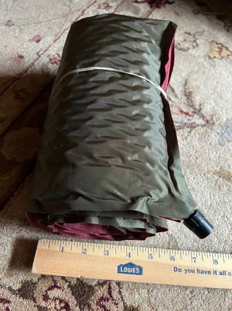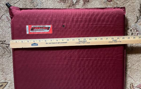 Rolls up small and light for backpacking. Noticeably used but still works great. 20 x 72 x 1