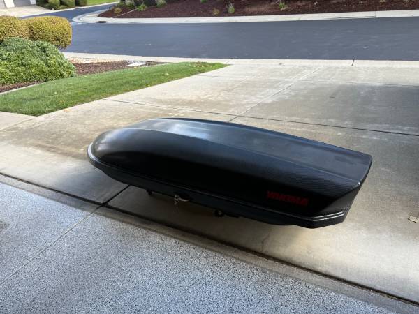 Yakima Skybox 16. Good condition, operates perfectly, 2 keys. There has been a crack repair on the rear right side, see pictures. $325