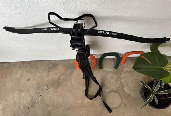 JAGUAR RECURVE CROSSBOW DRAW WEIGHT 175 POUNDS ALLOWING ARROWS TO TRAVEL AT SPEEDS UP TO 245 FEET PER SECOND (FPS) SCOPE DETACHABLE QUIVER & SHOULDER SLING NO ARROWS TRADE OK 150.00 OBO