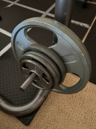 For sale are the following dumbbells and weight plates: Dumbbells 30 lb dumbbell (single) 25 lb dumbbells (pair) $100 for all of the dumbbells. Weight Plates (2” or Olympic) 45 lb plates (pair) 10...