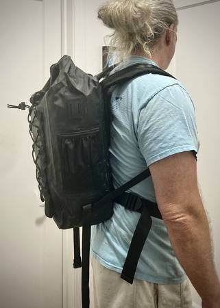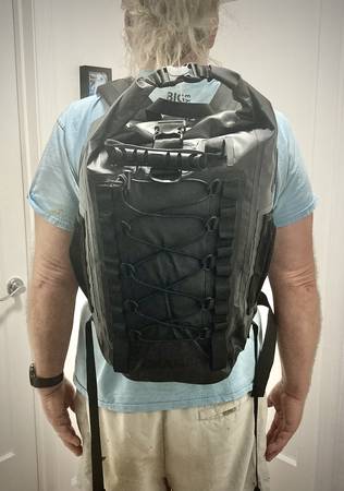 New unused Rockagator Hydric waterproof backpack. It's a really well made, bombproof pack. Welded seams and roll-top closure create an airtight seal that keeps gear dry. Tons of features: waist belt, sternum strap, zippered internal pouch, side mesh pockets, daisy chain loops and rear bungee cord tie down. If you close the top properly, it will float in water.