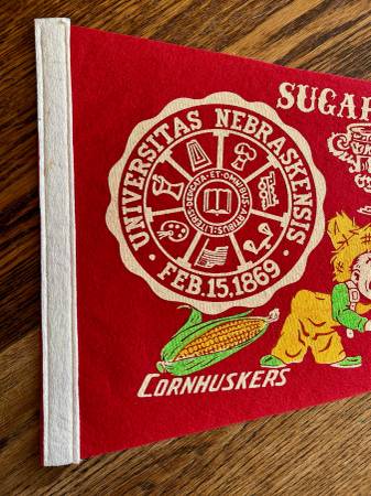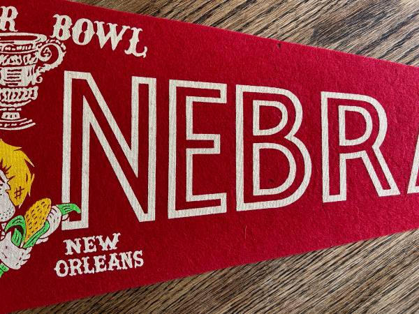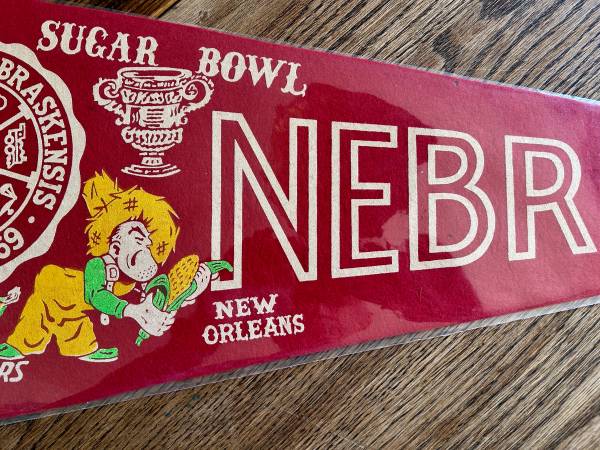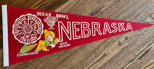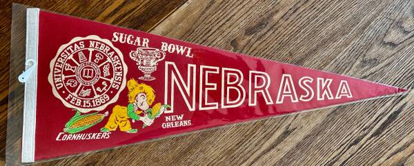 RARE 1975 NEBRASKA CORNHUSKERS SUGAR BOWL PANNANT NEW MINT CONDITION IN PLASTIC SLEEVE. $70