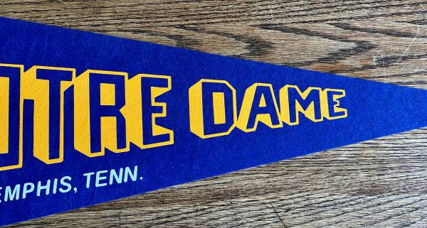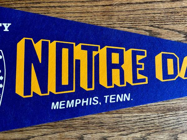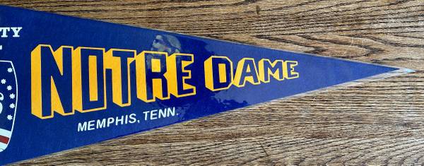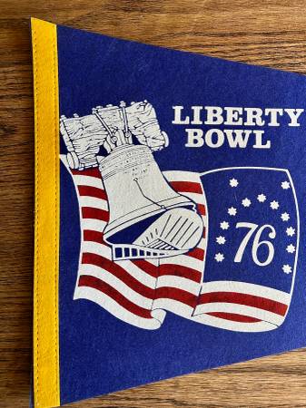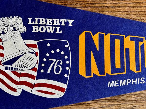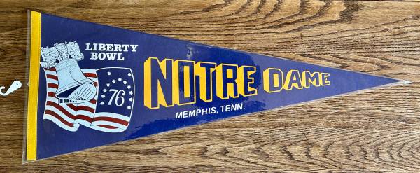 RARE VINTAGE 1976 NOTRE DAME LIBERTY BOWL PENNANT MINT CONDITION WITH PLASTIC SLEEVE. $70
