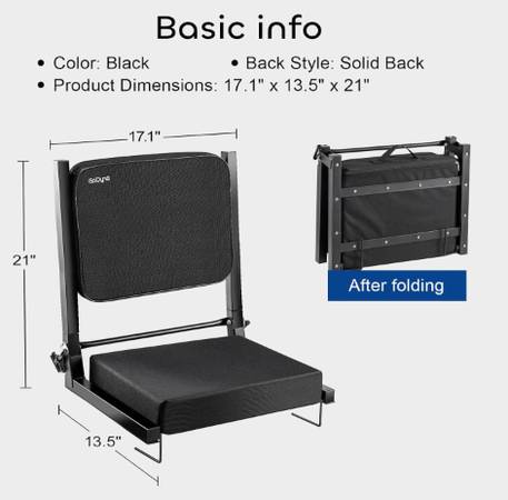 Versatile Height Options for Every Fan: Take your stadium experience to new heights – literally! Our bleacher seat offers three adjustable height settings: 17 inches, 19 inches, and 21 inches. Experience convenience in motion with our 10-second quick adjustment feature. Easily transition between the three height settings, adapting to your preferred seating position for an immersive and comfortable game-day experience.