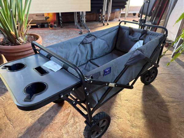Mac Sports Utility Foldable Wagon w/ Table and Drink Holders Like new condition Color: Gray Steel Frame Inside Zipper Pocket Longer Cargo All-terrain Wheels 350 lbs. load capacity Dimension: 44"L x...
