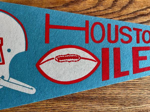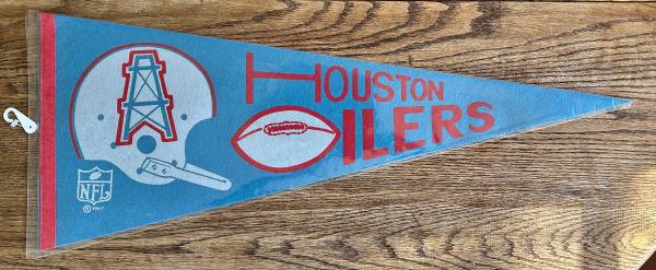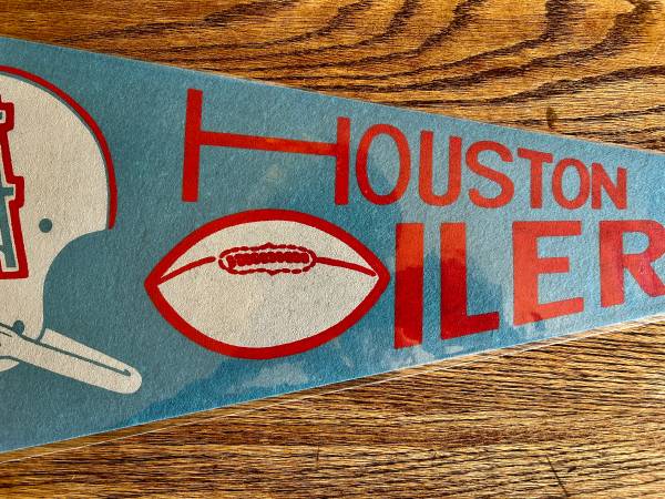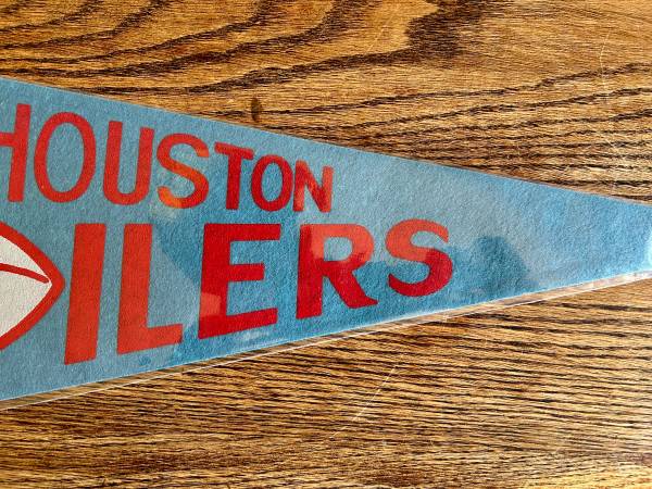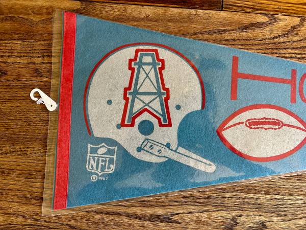 VINTAGE 1967 MINT 1st HOUSTON OILERS NFL PENNANT IN PLASTIC SLEEVE. LIKE NEW $70