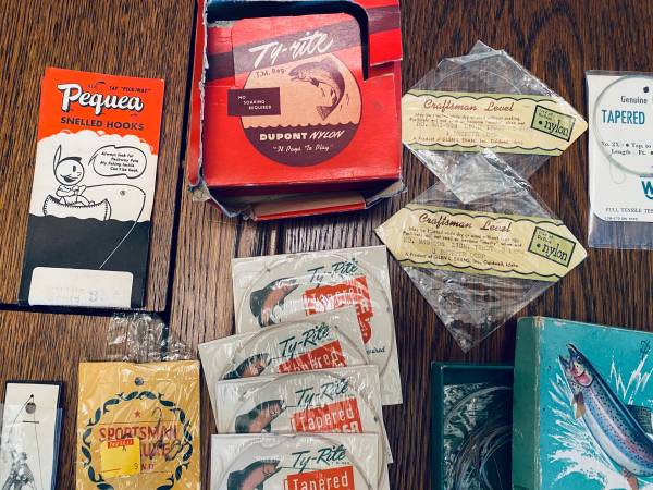 VINTAGE COLLECTABLE, STILL IN SEALED PACKAGING.FISHING LINE HOOKS LEADERS LURES FLIES. $50