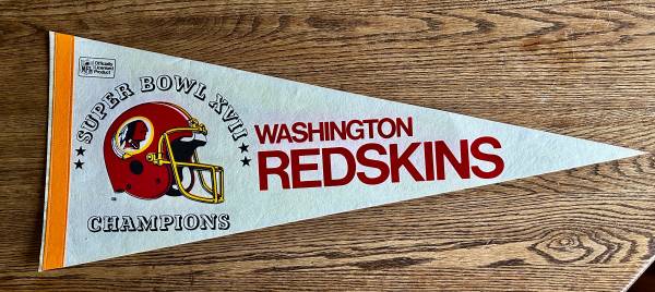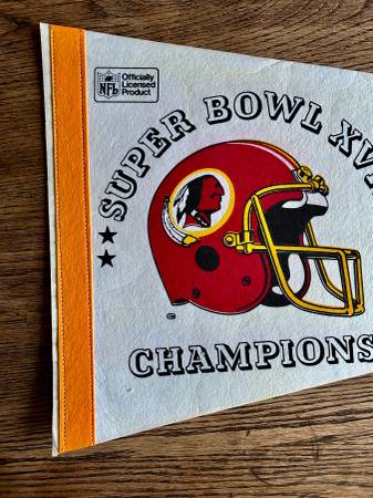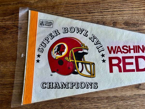 VINTAGE NFL 1992 WASHINGTON REDSKINS SUPER BOWL CHAMPIONS PENNANT MINT CONDITION WITH PLASTIC SLEEVE. $40