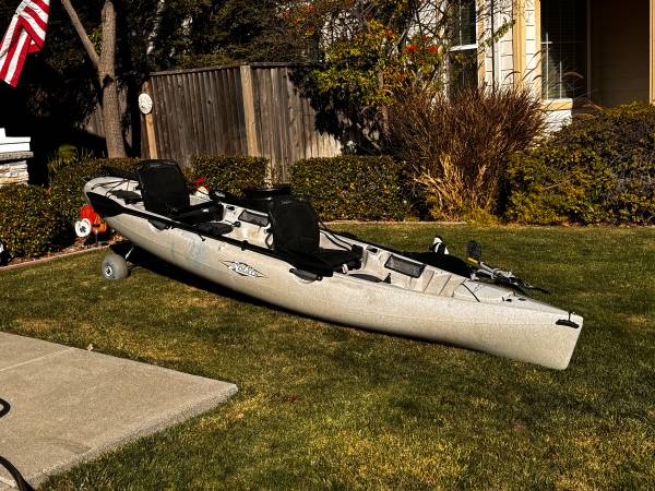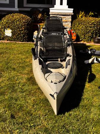2018 fishing and recreational use. Premium seats, Mirage petal drive x2, floats to keep from tipping over, fiberglass paddles. Lightly used.