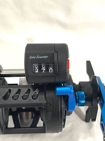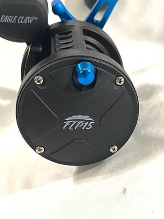 Brand new never used Eagle claw (FLP15) heavy action, deep-sea fishing reel with depth gauge