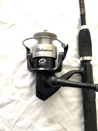 Like you hardly used Shakespeare 7 foot medium, heavy action, fishing rod, and reel combo and Shakespeare 6 foot medium action, fishing rod, and reel combo. The rods are first strike. And Rhino