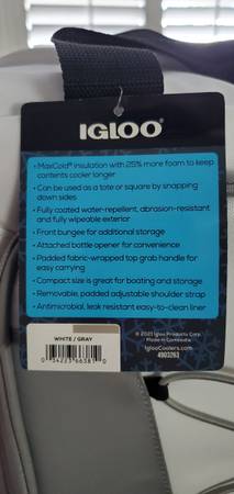 I have several Igloo Bayside cooler bags for sale. These are "Brand New" never used. Choice of color is white as in pictures. The blue are all sold. They hold up to 36 cans and have a front pocket as well to keep valuables and electronics dry! Also come with a carry strap! See last picture for more description. $20 each or $15 each for 2 or more coolers! Located in vacaville for pickup. Let me know how many you need! You can get 2 for 1 off retail price!