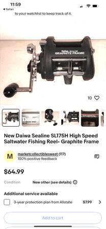 Like new condition Daiwa (SeaLine-SL175H) graphite frame medium, heavy action, deep sea fishing reel. Retails for $65 for a used reel.