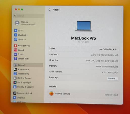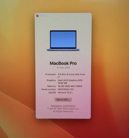 MacBook Pro 15 inch 2019 2.6 i7 16GB 256GB Radeon Pro 555X 4GB MV902LL/A Used (check images) Comes with power adapter and USB-C Cable ext preferred 916 SevenThree5 5966. Visit our website...