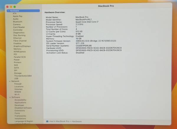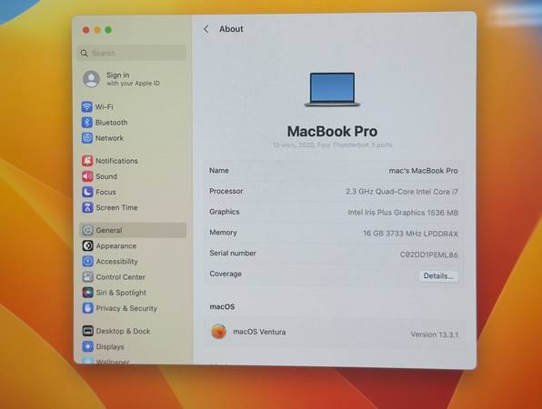 2020 MacBook Pro 13 inch 2.3 i7 16GB 1TB Iris Plus Graphics Used -...