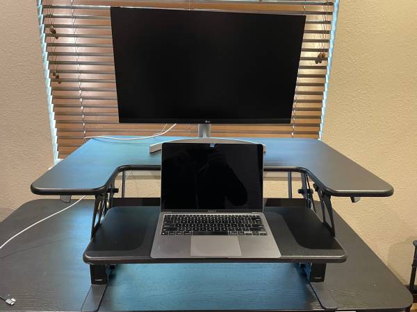 Black 36” desk riser (like new!) great for getting off your rear in the office.