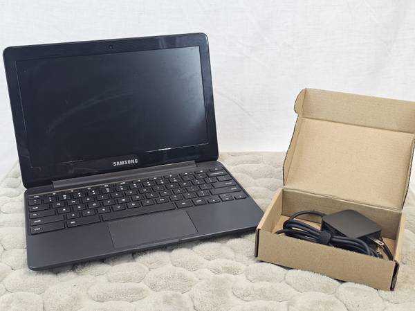Samsung 3 Chromebook: Get compact power with this Samsung Chromebook laptop. Its 11.6-inch HD display provides clear graphics with anti-reflective technology, and its 4GB of RAM and Intel Celeron processor keep multitasking operations moving smoothly. This Samsung Chromebook laptop includes a 720-pixel camera and a 32GB flash drive to store documents, photos and programs. This Chromebook is untested as it does not charge and therefore does not turn on.