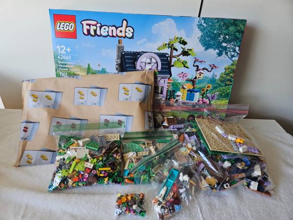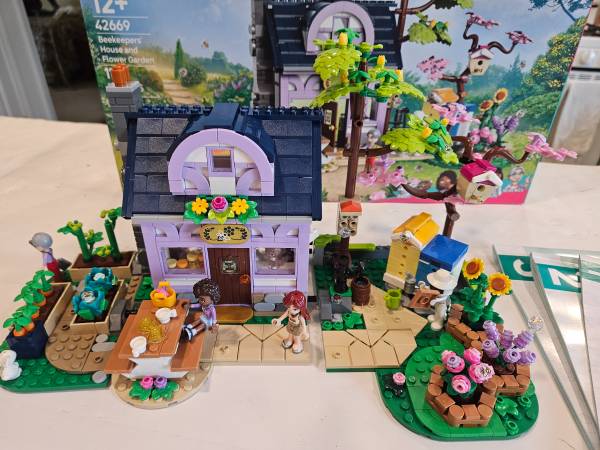 Lego Friends "Beekeepers house and flower garden. 1,161 pcs. Was a fun build & cute build. Bagged up. Comes with box, instruction book, and all pieces. I like to build but haven't the room to keep.