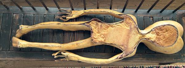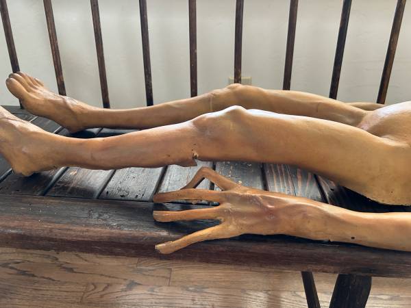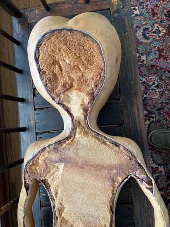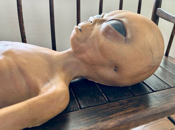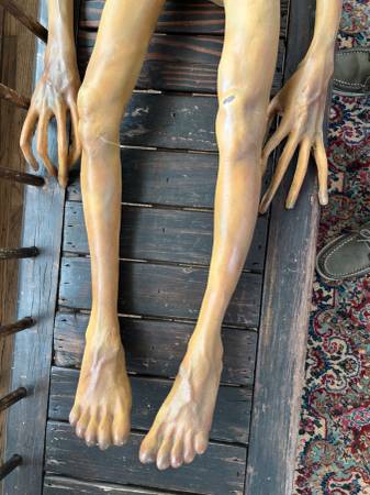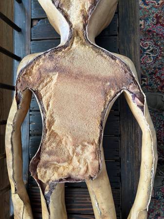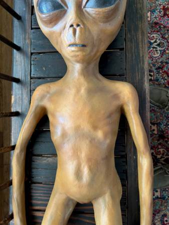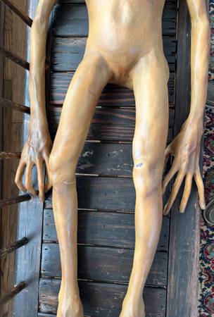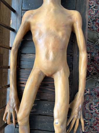 This is a life-size (47in) Roswell alien from the 1990's original X-Files television series used in the autopsy scenes in the show. I believe only 75 of these were made for the show then locked in a vault in the 90's until they were sold in a public auction. This was purchased at an auction in Los Angeles 2010. This prop surprisingly shows little ware because it been stored of years. The back is flat since only the front was seen. It is filled with foam.