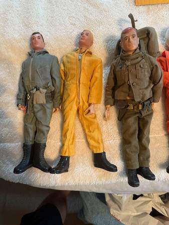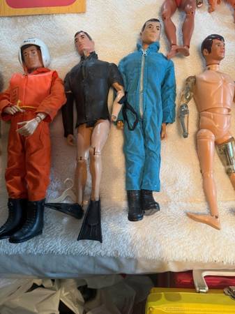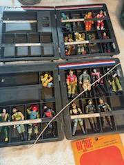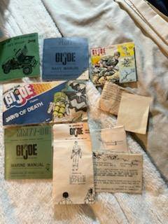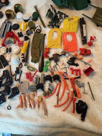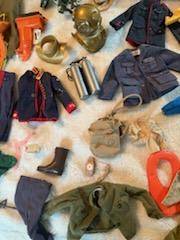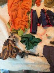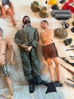 Mainly vintage GI joe, action man, the defenders, atomic man, jeep isa 2001, hasbro, lots of accessories, vintage clothes, two cases of small vintage gi Joes