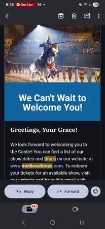 I won 2 tickets but am unable to go, expires next year. Email or text if interested.