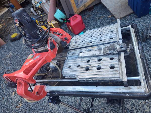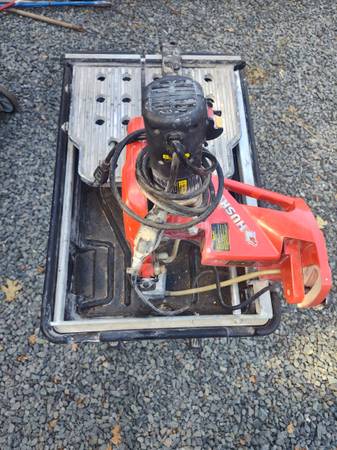 Husky 7" Wet Tile Saw With Stand for $175. It works great. Model THD950L. Max cutting debth 2 1/4".