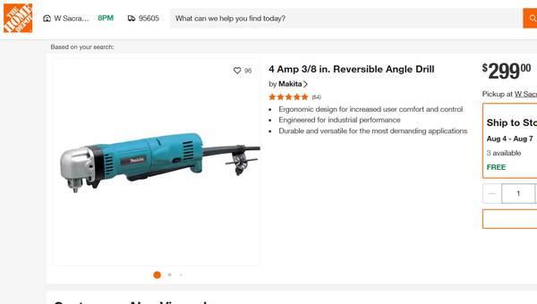 If interested Text or call me 3/8 in. Reversible Angle Drill Ergonomic design for increased user comfort and control Made in Japan At Home Depot $299.00 plus Tax