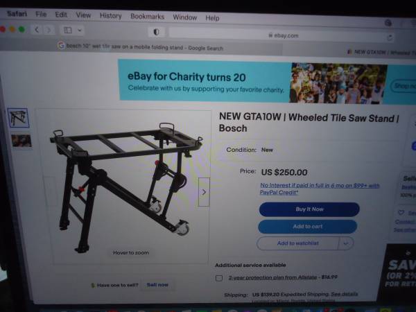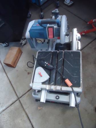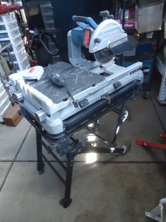 Used Bosch 10" Wet Tile Saw on a Bosch folding rolling gravity stand , $700.