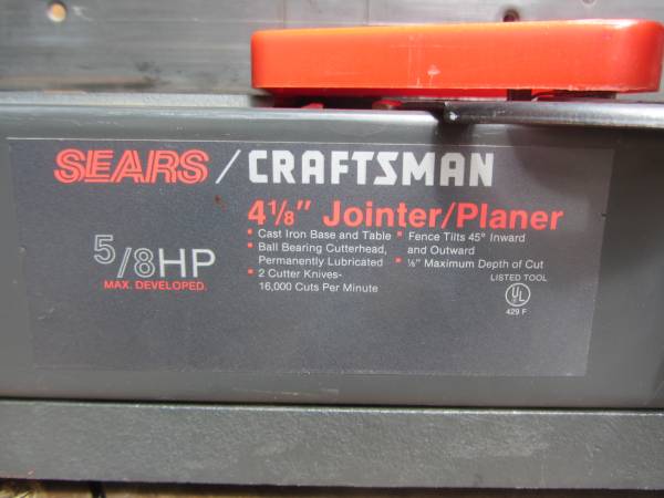 Craftsman 4-1/2" Bench Top Jointer Planer , $120.