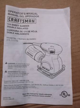 If interested Text or call me Craftsman Corded 1/4 Sheet Sander 315.111770 with Dust Bag and Case. Manual:...