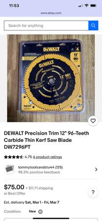 New Dewalt 12" 96 tooth miter saw blade , $60 firm.