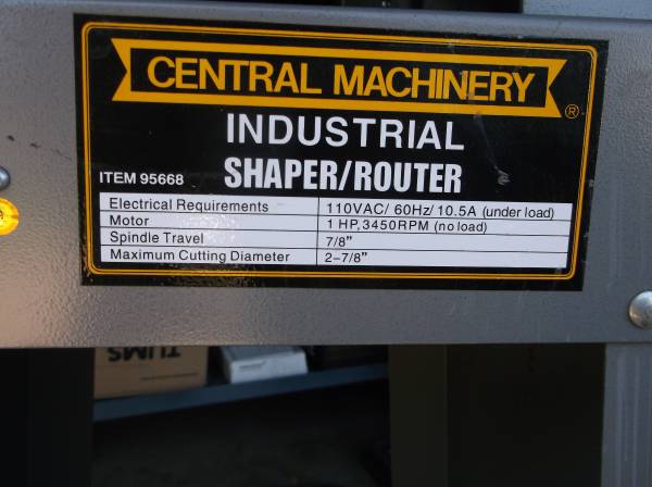Central Machinery Idustrial 1 HP Shapper Mod 95668
