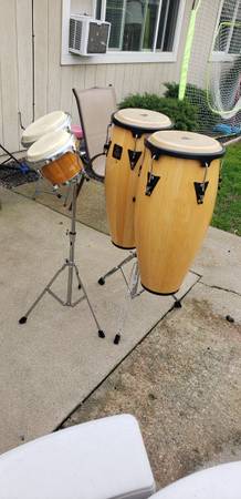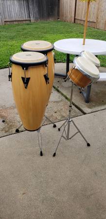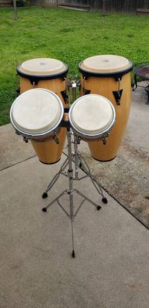 This set of Latin LP-Aspire congas with the stand is in excellent condition (size 10''-11'')selling them for $350 obo.Also selling this set of Bongos with the stand in excellent condition (made by Millenium Percussion )for $100 obo.Save money by buying the combo for only $ 400,making it a great deal. This Latin Percussion instruments are professional grade made for the beginner, intermediate or the already seasoned player as well. Inspírate y cómpralos ahora no te lo pierdas. ¡Tamboréate chico! Cash only please.Thank you for your interest.