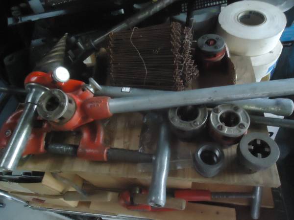 Used in excellent condition Ridgid pipe threading Ratchet with 3 or 4 die heads up to 3/4" , ratcheting Rimmer and large pipe Cutter , $250 for all.