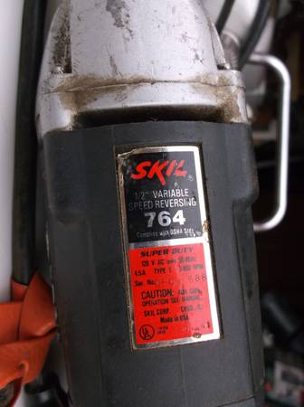 If interested Text or call me Skil 1/2" Capacity Variable Speed Reversible 0-850 R.P.M. electric drill Mod. 764 Made in the USA