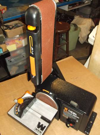 If interested Text or call me Like New WEN 4.3 Amp Corded 4 in. x 36 in. Belt and 6 in. Disc Sander with Cast Iron Base. The sanding bed can be positioned horizontally or vertically