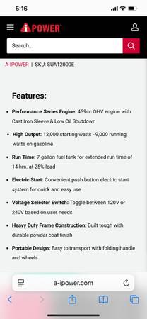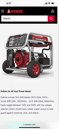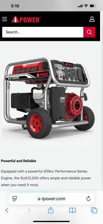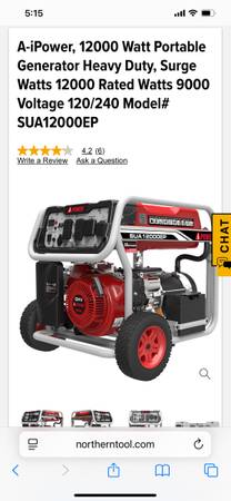Hello, I have a new out of the box SUA12000E - 12000 Watt Portable Generator. It’s all put together ready for use. $750.00 located in Cool auburn lake trails.