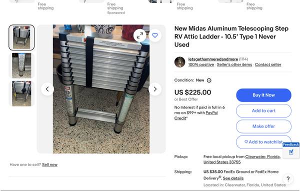 Used a few time, like new condition. Great for RV, attic, o roof top. Adjusting height extends up to 10.5’. Easy storage and versatile usage. Retails at $225. Ask for only $95. If interested, text...