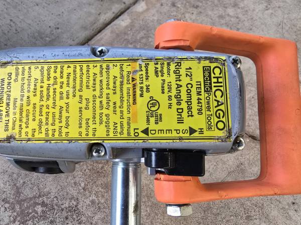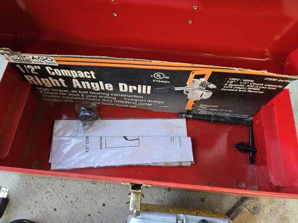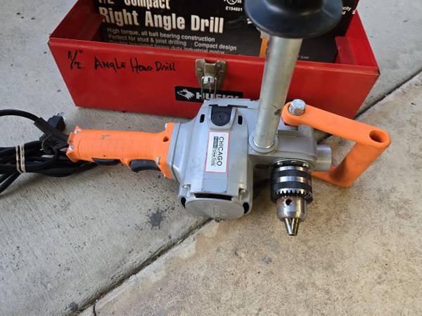 Chicago Electric Power Tools 1/2" Compact Right Angle Drill 44790 for $60. It's in great condition. Works well. Comes with the Husky Tool Box. *The price is firm, please no offers. *I'm located near...