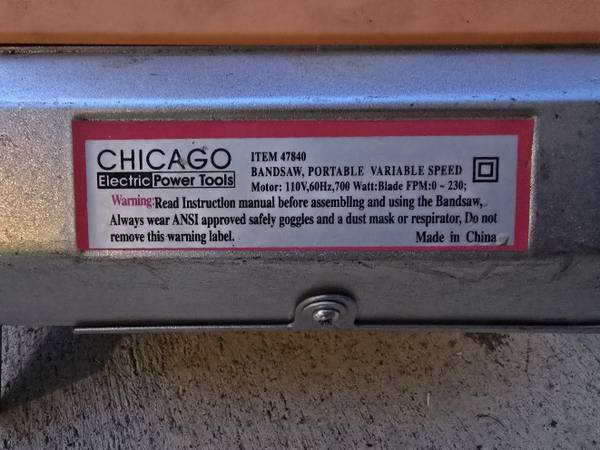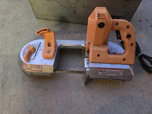 Chicago Electric 47840 Portable Variable Speed Band Saw for $60/firm. It works well. Comes with the B&D tool box for storage. The tool box top handle is broken.