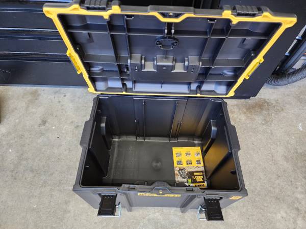 Brand New Dewalt Toughsystem 2.0 24 in. Rolling Mobile Tool Box for $90/firm. Measures H 38.805 in, W 23.79 in, D 19.89 in. Handle extends. No tools included.