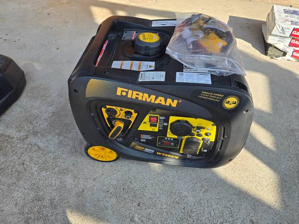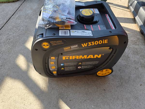 Firman W3300iE 3000W Gas Generator for $425. The digital display doesn't work. I haven't looked into it. Besides that it works great. Ran a large 5th wheel without a problem. I would say it has under 15 hours. It's not the easiest starter, takes about 5-10 pulls.