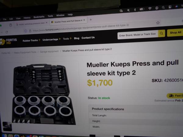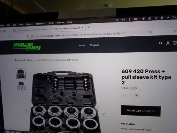 New Muller Kueps Press and Pull Bearing Sleeve Kit EPP Type 2 Nr.609420 for bushings / bearings / seals , new price $1700+tax , selling for $1200.
