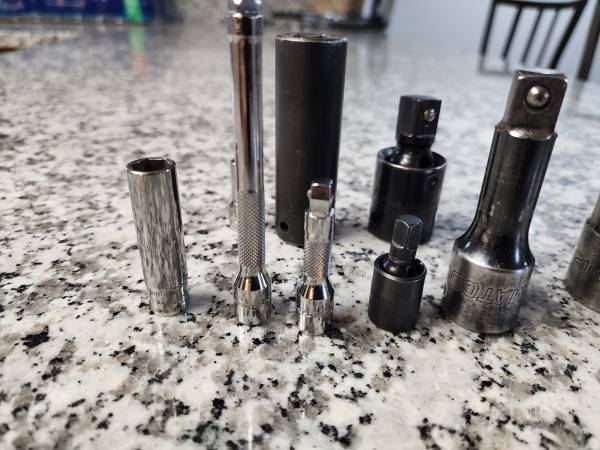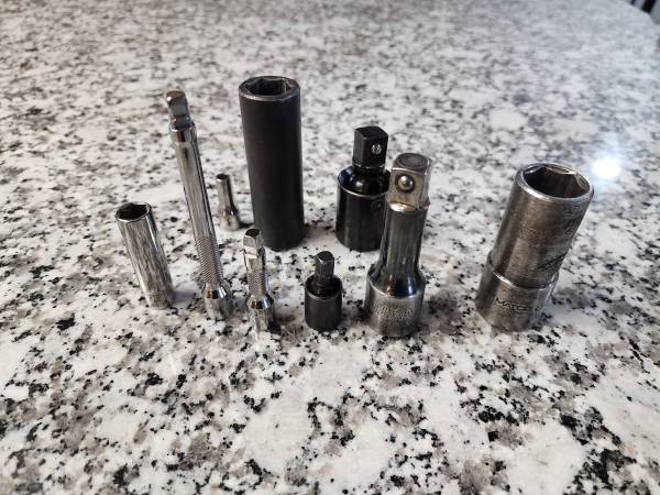 Assorted 9PC Sockets for $90/firm. They're in good condition with normal wear. Snap-On 1/4" Drive 2" Chrome Wobble Knurled Extension TMXWK2 Matco 1/2" Drive CP19-21M6A 19mm 21mm Thin Wall Flip...